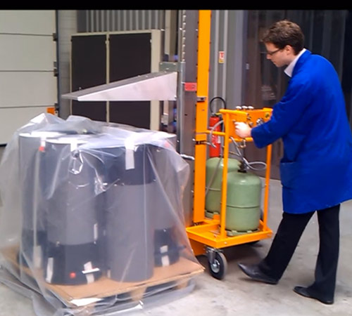 Der RIPACK Turbopack ist eine fahrbare Schrumpfleiste für die Verpackung und Sicherung eines größeren Palettenaufkommens. Durch einfaches Umfahren der Palette wird die PE-Schrumpfhaube perfekt geschrumpft.